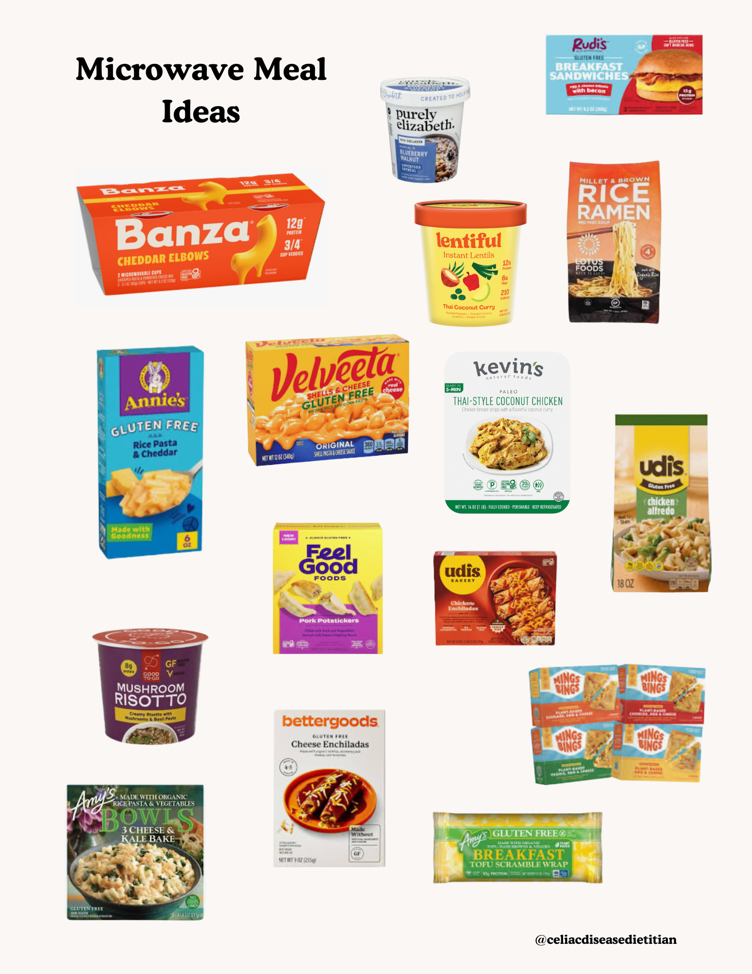 Below is a quick guide to what items you should not share and items you can share. There are lots of things online about what items you should and shouldn’t share and below I made this list airing on the side of caution. Unfortunately, not a lot of studies are done on cross-contact so a lot of information out there is outdated. I also encourage you to air on the side of caution especially when cooking in a dorm kitchen or with roommates who might not understand your need to avoid cross-contact. It is 100% possible to use a shared kitchen, but in the college setting everyone has different levels of “cleanliness.” You might get to your dorm kitchen and find crumbs everywhere and dirty pots on the stove. In cases like this you might feel more comfortable just using a microwave in your dorm and that’s totally okay! (See below for microwave meal ideas). On the other hand, you might feel more comfortable wiping down the shared dorm kitchen quickly and bringing your own pans to cook with. Keep these safe in your room so you know they are dedicated GF.