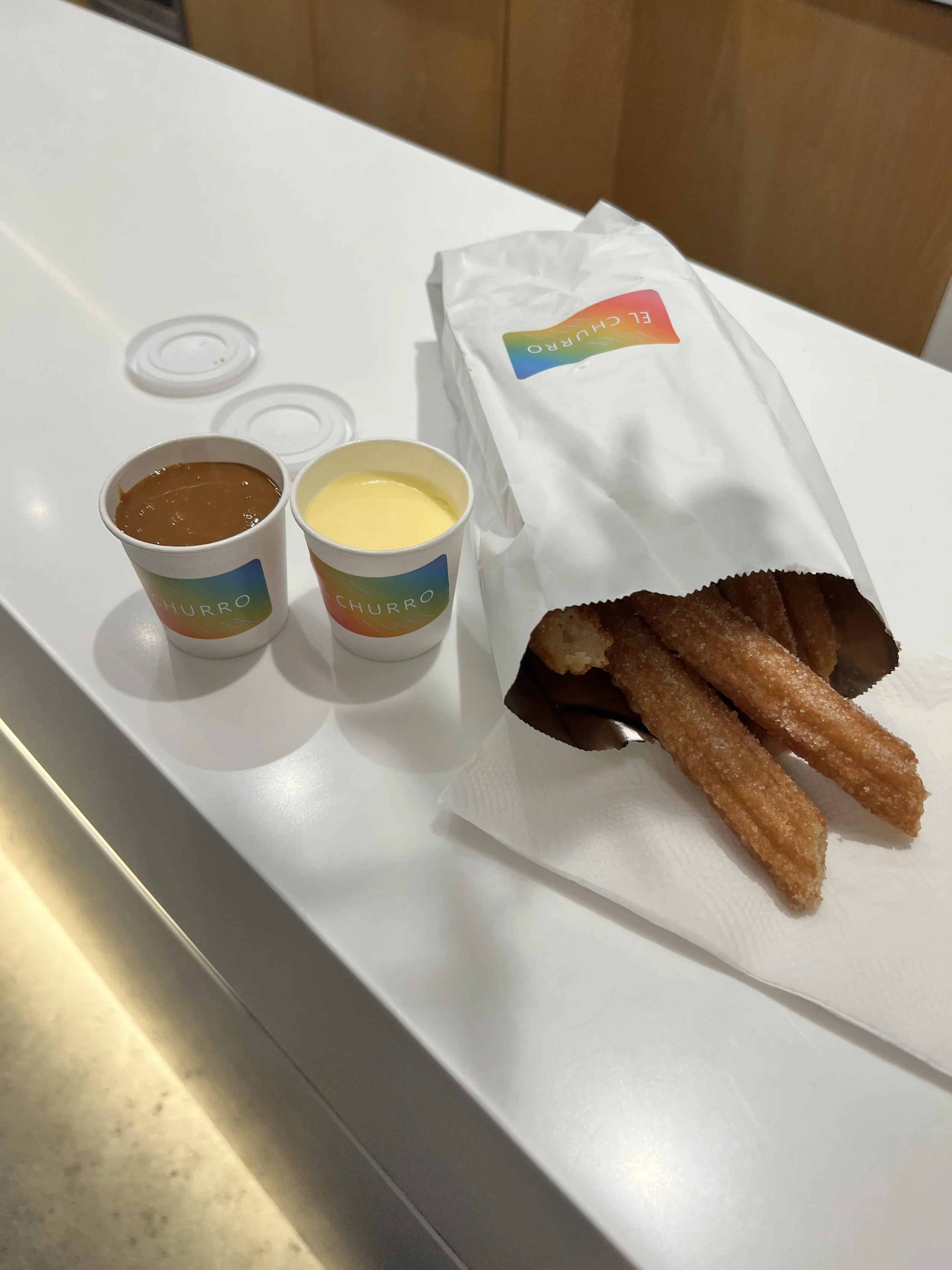 Gluten free and vegan churros and dips. They also serve soft serve and coffee. Gluten free churros are a rare find!